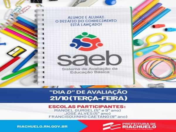 A Secretaria Municipal de Educação de Riachuelo realiza nesta terça-feira, 21 de outubro, o Dia “D” de Avaliação do SAEB — Sistema de Avaliação da Educação Básica.